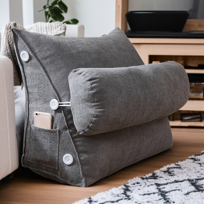 ● 三角形デザインで、窓際やソファーにぴったりフィットし、快適な背もたれをサポートします。